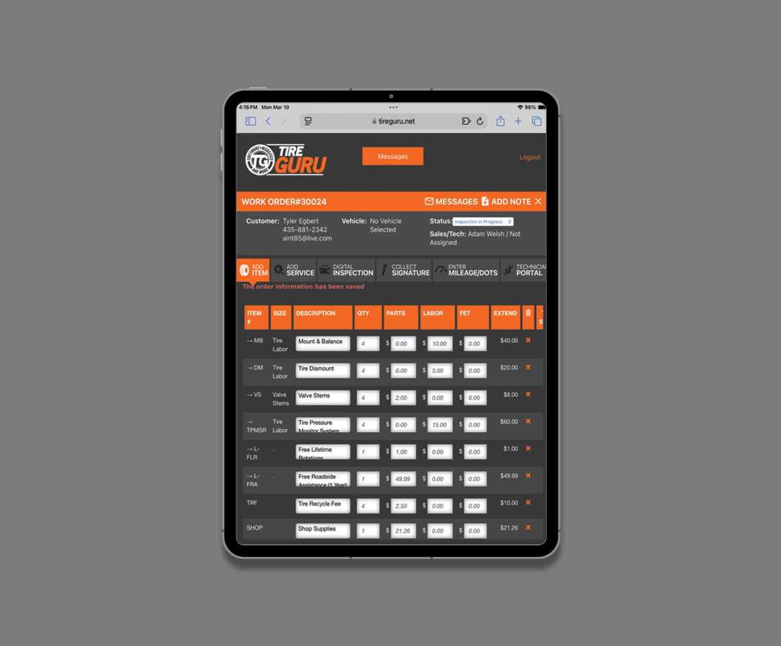 Managing a business is no small task, but using the right tool can make it easier. Streamline operations and boost productivity with Tire Guru. No more switching between multiple systems and manually inputting information, get all the functionality you need in one end-to-end platform.